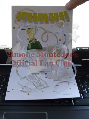 "Carissime ragazze, qui tutto bene stiamo lavorando molto... speriamo bene per la nuova serie.. voi dove siete? In vacanza spero!!!!!!!! Ve lo auguro almeno, e credo ve lo siate meritato, noo? Vi ringrazio del pensiero fantastico ricevuto.. ma soprattutto dei tantissimi messaggi d'auguri mandati!!!!! Vi adoro grazie a tutto lo staff!!!! che permette questo; e tutte le ragazze che si sono firmate sul biglietto..!!!! Vi auguro delle ottime vacanze, ovunque e comunque!!!!!!!!! Ringrazio tutte le persone che hanno lasciato un messaggio!!!! E ci tengo a dirvi che vi voglio bene!! Vostro Simone. Baci"