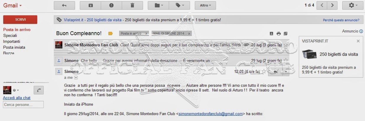 ECCO I RINGRAZIAMENTI DI SIMONE PER IL REGALO DI COMPLEANNO DEL SUO FAN CLUB UFFICIALE!