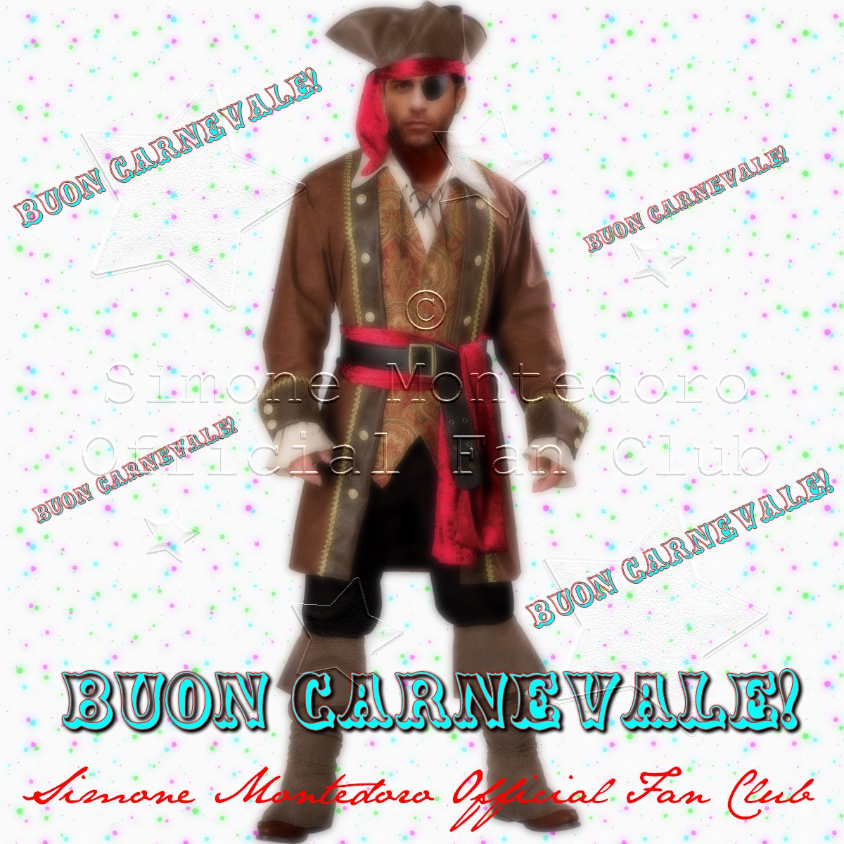 BUON CARNEVALE A SIMONE E A TUTTI VOI MONTEDORIANI! QUESTO È UN PERIODO DI ALLEGRIA, SERENITÀ E GOLIARDIA! E ANCHE NOI DEL SIMONE MONTEDORO OFFICIAL FAN CLUB CI DIVERTIAMO A MASCHERARCI, A TRAVESTIRCI E A SCHERZARE, ANCHE CON SIMONE, VESTENDOLO CON ABITI E MASCHERE DIVERTENTI. ED ESSENDO SIMONE UNA PERSONA SCHERZOSA ED IRONICA, SORRIDERÀ NEL VEDERSI VERSIONE PIRATA DEI CARAIBI! Lo Staff