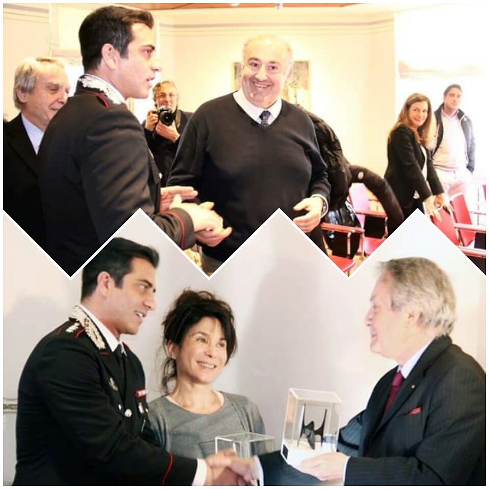 Simone, insieme a Nathalie Guetta, ha ricevuto in premio una riproduzione del Teodelapio per Don Matteo, premio della Fondazione CARISPO. Foto grazie a