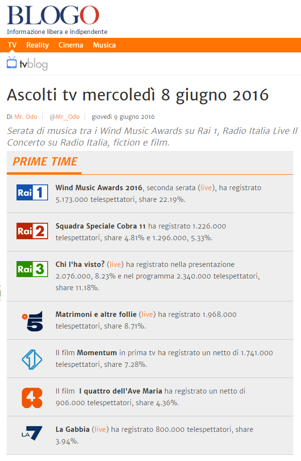 giovedì 9 giugno 2016