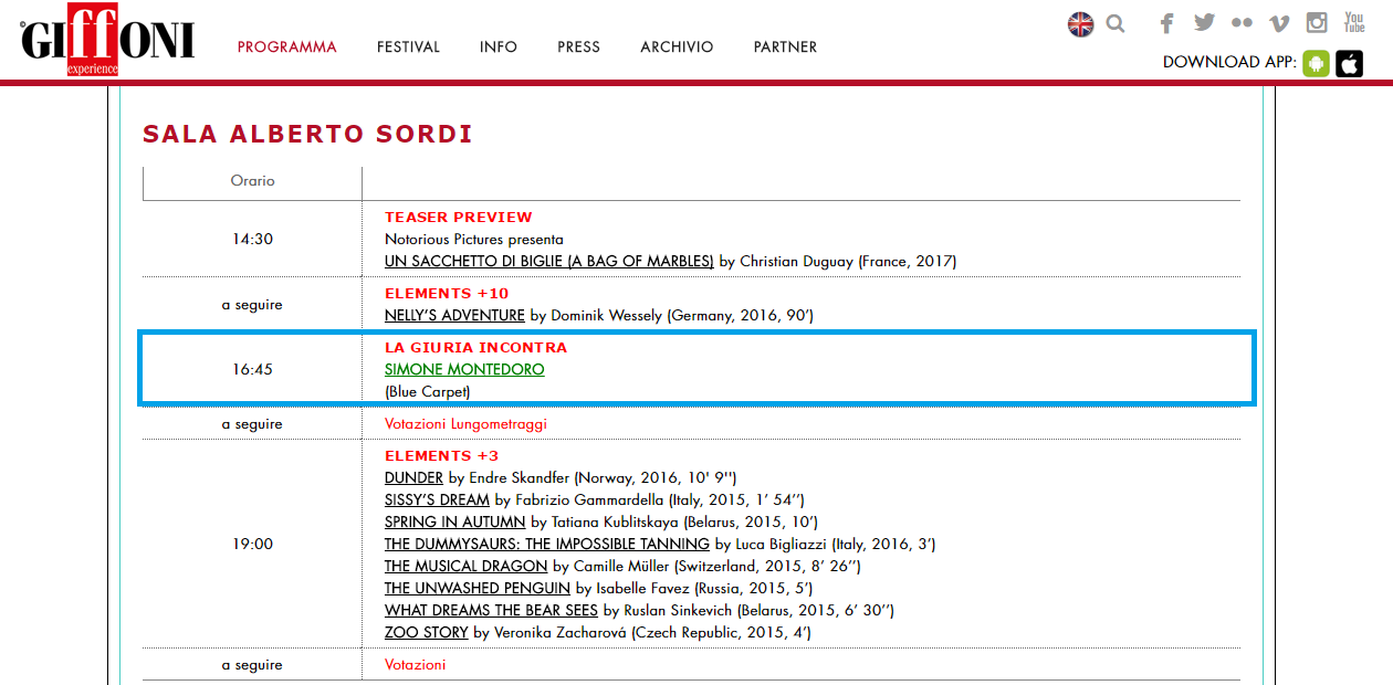 COME GIA' ANNUNCIATO CON IL POST DEL 15.07.2016, SIMONE SARA' OSPITE AL "GIFFONI FILM FESTIVAL 2016"! DI SEGUITO RIPORTIAMO LOCATION ED ORARIO DEL SUO INTERVENTO AL FESTIVAL: