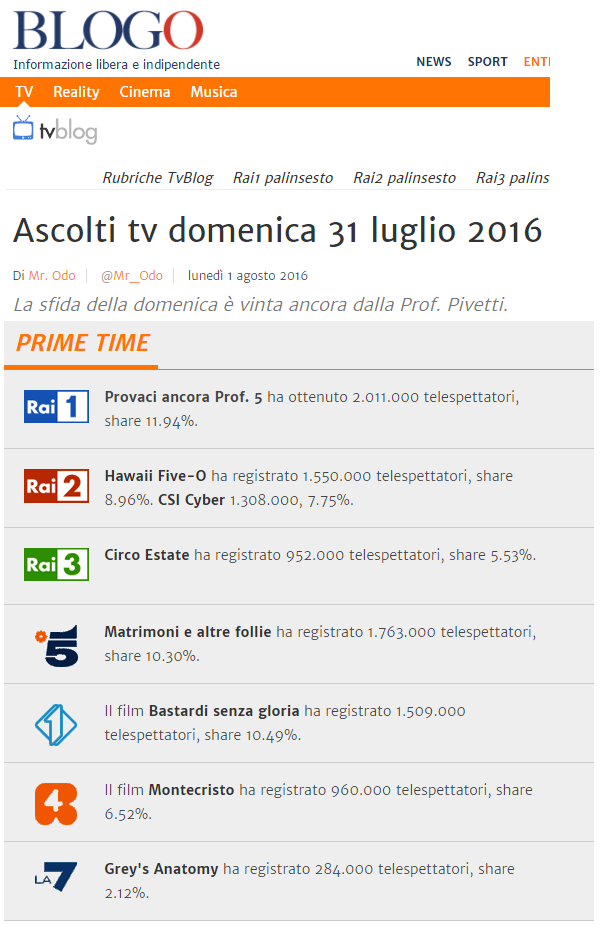 Ascolti dodicesima ed ultima puntata di "Matrimoni e altre follie"