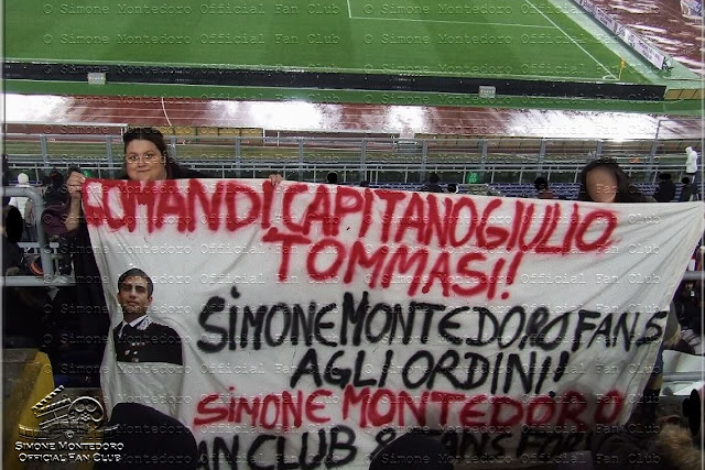 Simone Montedoro al Derby del Cuore 2009 - Lo striscione allo stadio!