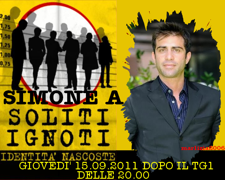 Come comunicatoci nel suo messaggio, vi informiamo che Simone sarà tra i protagonisti della puntata de I Soliti Ignoti di giovedì 15 settembre 2011, che precederà la prima puntata di Don Matteo 8. Appuntamento, quindi, dopo il TG1 delle 20.00, su Raiuno. Vi aspettiamo!
